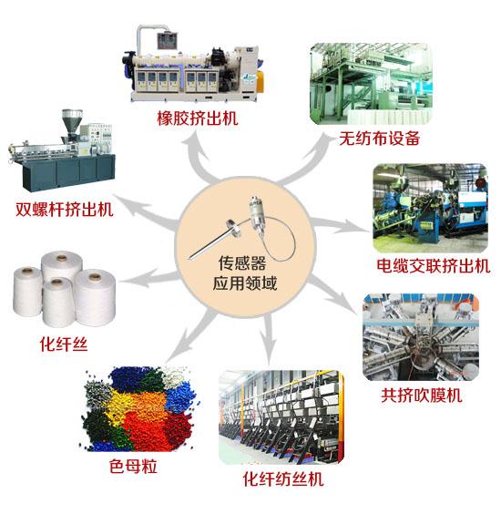 橡膠擠出機(jī),塑料擠出機(jī),塑膠押出機(jī),電纜押出機(jī),紡絲機(jī),注塑機(jī),熔體泵,無紡布設(shè)備等機(jī)械行業(yè),產(chǎn)品大量配套于無紡布,色母粒,化纖紡絲,橡膠,塑膠等諸多產(chǎn)品行業(yè)中,水處理,食品機(jī)械行業(yè)市場。為我公司環(huán)保型高溫熔體壓力傳感器,高溫熔體壓力變送器主導(dǎo)對象。